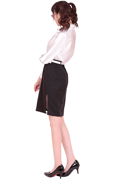 - 憧れの美人教師に変身!ブラックのスカートに入ったスリットから覗く生足が、セクシーなコスチューム。