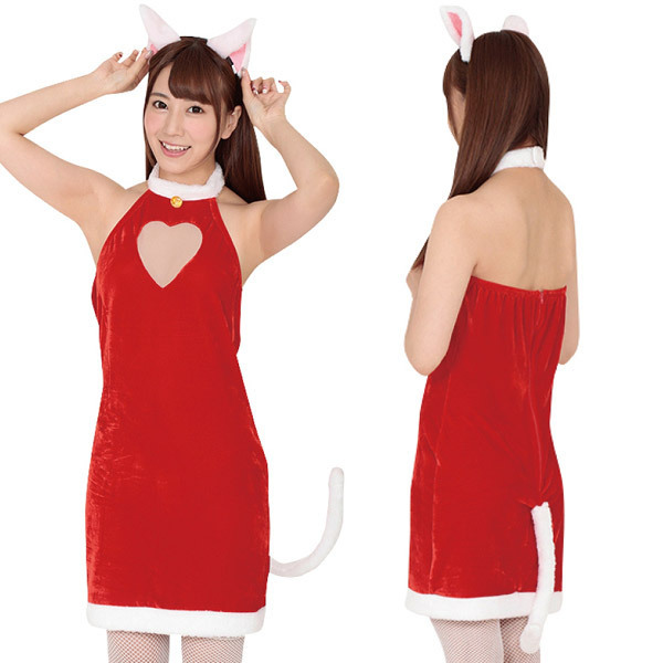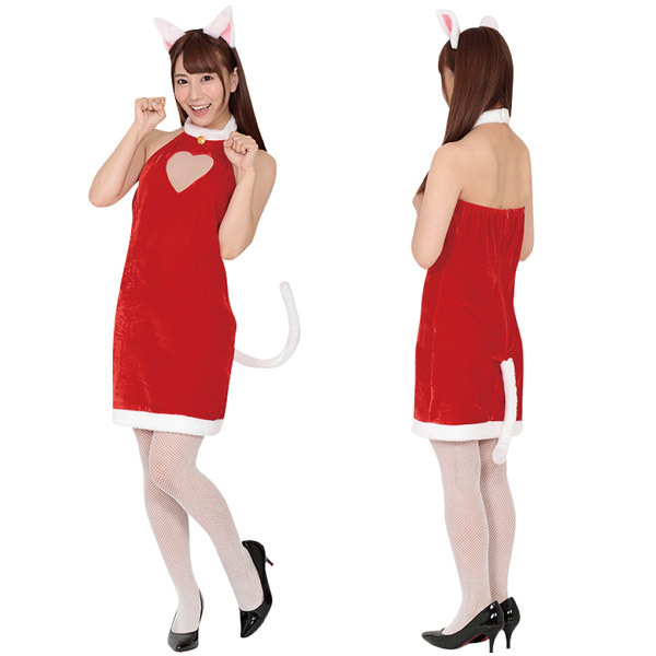 - クリスマス、サンタコスチュームの激安通販サイトはコチラ!聖なる夜はふわふわ尻尾付きの可愛いクリスマスコスプレで盛り上げるにゃん♪赤×白のノースリーブワンピースと猫耳カチューシャの2点セット。