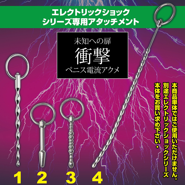 - ペニスに走る衝撃!低周波パルスグッズ「エレクトリックショック」シリーズから、金属製の専用ブジーアタッチメント。