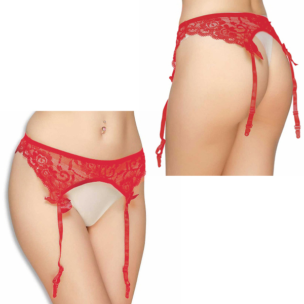 - 情熱的な赤が大人の色気を演出!美しいフラワーレースの定番ガーターストッキング!両サイドのリボンのワンポイントもキュート♪