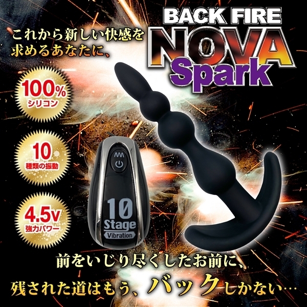 - 人気のバックファイアシリーズから「バックファイアーNOVA SPARK」が登場しました♪スパークは座薬の位の大きさの1センチの先端から始まり、2連続の15mm&19mmの玉が続き、最後は内部にローターを搭載した21mmの玉が待ち構えるという設計!全部で4箇所の隆起が体験でき、1個の玉を通過するたびに、ゾクゾク感と振動が強くなっていき最後の玉を飲み込んだ時にはまさに脳内でスパーク現象が引き起こされることでしょう!カラーバリエーションはブラックとブルー、ピンクの3色展開でこちらはブラックとなります。