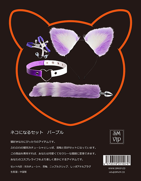 - パッケージ:30.0×22.0×3.0cm 本体:耳カチューシャ約20cm×約20cm・首輪直径約12〜14cm・ップルクリップ(ハサミ口最大約1.6cm・長さ約5.6cm)・しっぽアナルプラグ直径約2.7cm・しっぽ長さ約40cm セット内容:耳カチューシャ、首輪、ニップルクリップ、しっぽアナルプラグ 原産国:中国 重量:本体135g