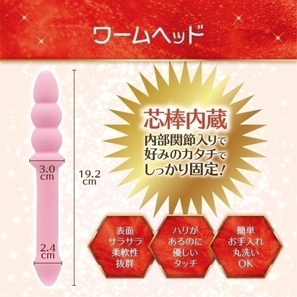 - フレキシブルな設計で自在に形を変えられるスティック型のディルドです♪内部に関節を搭載しており、自由に曲げて自分好みの形状に調整可能!シリコン製で柔らかな手触りながら、芯棒入りで安定感も抜群です♪曲げた状態をキープできるので、独自のプレイスタイルを楽しめます!使用後は水洗いで清潔に保てる設計♪水分をよくふき取り、快適な使用感をいつまでもお楽しみください!自由度の高いデザインで、初心者から上級者まで満足できる逸品です♪