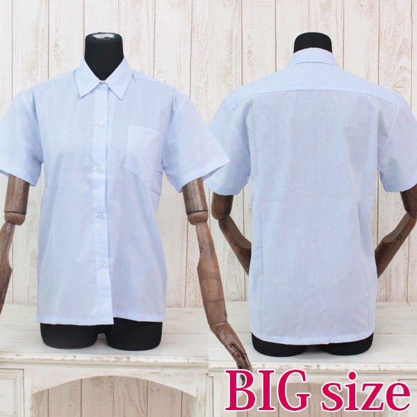 - 制服コスプレのマストアイテム!何かと重宝しそうな、爽やかサックスブルーの半袖ブラウス。