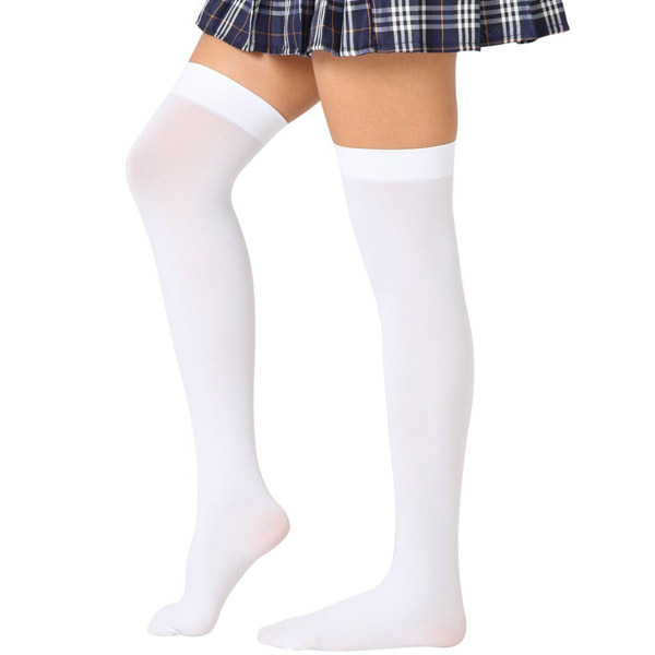 清楚なホワイトカラーのニーソはミニスカコスチュームと相性バッチリ!さらさらとしたシルキーな肌触りが魅力です。
