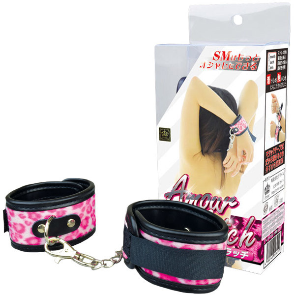 - オシャレで可愛い♪ファッショナブルなSMグッズシリーズ「アムールクラッチ 手枷 豹ピンク」。