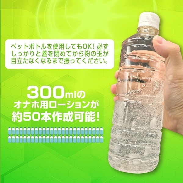 - 水に溶かして使うパウダータイプのローション原料です!1本で300mlのローションが約50本分も作れます♪必要な分だけ作れるから、いつでもフレッシュな状態で使用可能!作り方は、水やお湯に少しずつ粉を入れてかき混ぜるだけ♪お好みの粘度に調整できるので、使い心地も自分好みに仕上がります!抗菌・除菌成分を配合しているため、衛生面にも配慮されています♪高コスパながら、品質と清潔さを両立したアイテムです!持ち運びやすいコンパクトなボトルサイズで保管もラクラク♪日本国内で製造されており、品質面も安心です!成分はポリアクリル酸Naや重炭酸Naなど、安全性に配慮されたものを使用♪必要な分だけ作れるから、無駄も出にくく経済的です!コスパ重視で、清潔に使いたい方にぴったりのローションの素です♪