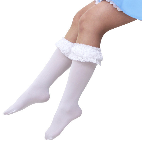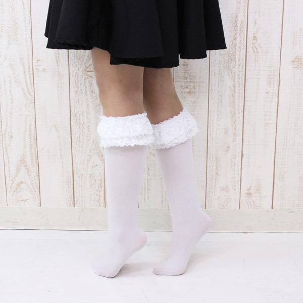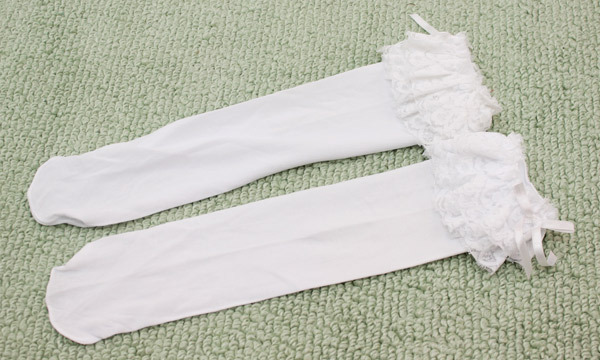 - ティアードレースに細めのリボンがベストマッチ!甘めのコスプレにプラスしたい二重レース付きの白ハイソックス。