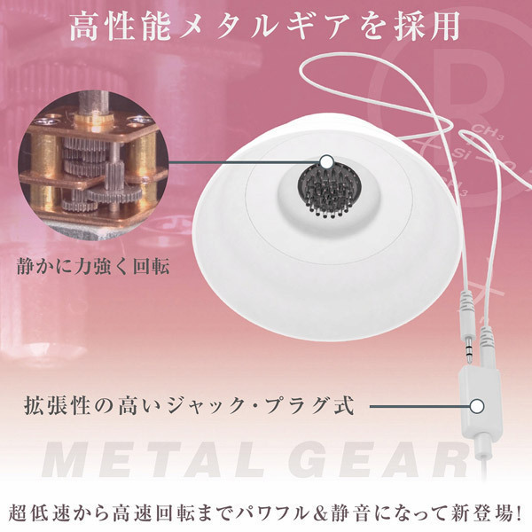 - 「金属ギア」搭載!静かに、ゆっくり、力強い回転が止まらない!大幅機能アップでもお値段そのまま!美しい流曲線のカップは乳房のサイズやかたちに関係なくやさしく吸着。