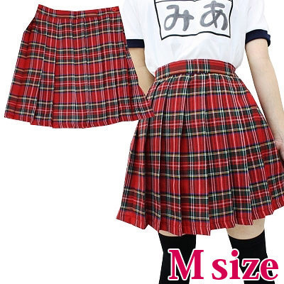 - 制服コスプレの定番アイテム!キュートな赤チェック柄プリーツスカート。
