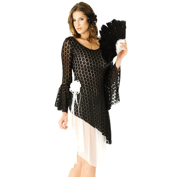 スカート部分がシースルー素材、ドレスは黒のレース使いと優雅さをかもし出しています。