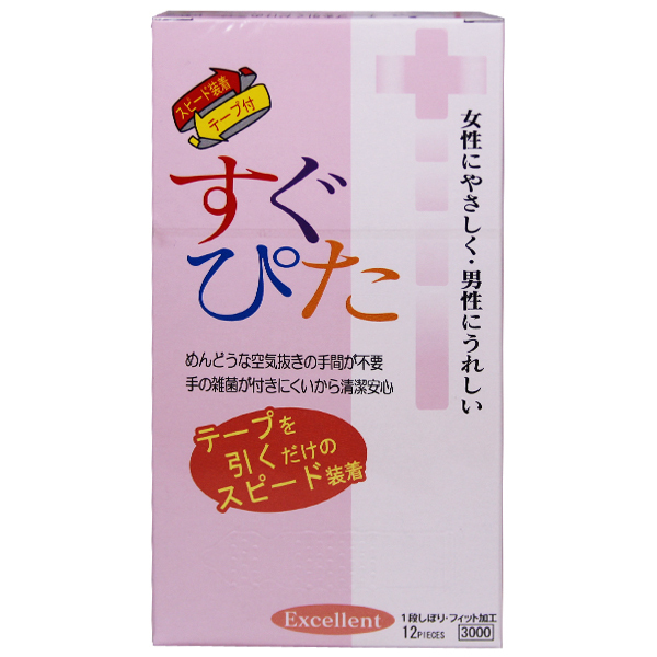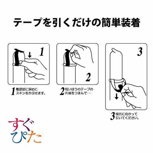- 一度使ったらやめられない!テープを引くだけで簡単に装着できる、スピード装着テープ付きコンドーム「すぐぴた3000」12個入。