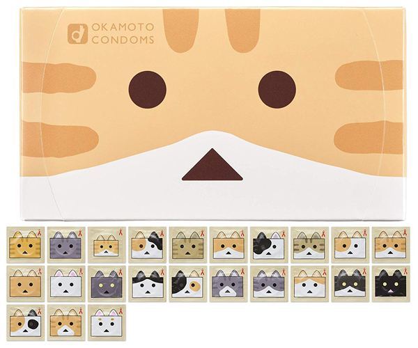 - オカモトとニャンボーのコラボレーションコンドーム♪個包装もかわいいニャンボー柄(全23種)ねこの温もりあったかニャンコゼリー採用。